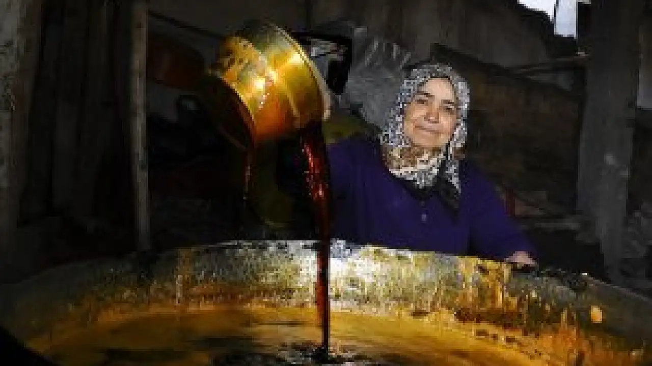 -Halkapınar'da, geleneksel ve organik yöntemlerle üzüm şırasından pekmez, pelte, köfter ve bandırma tatlısı yapılıyor.