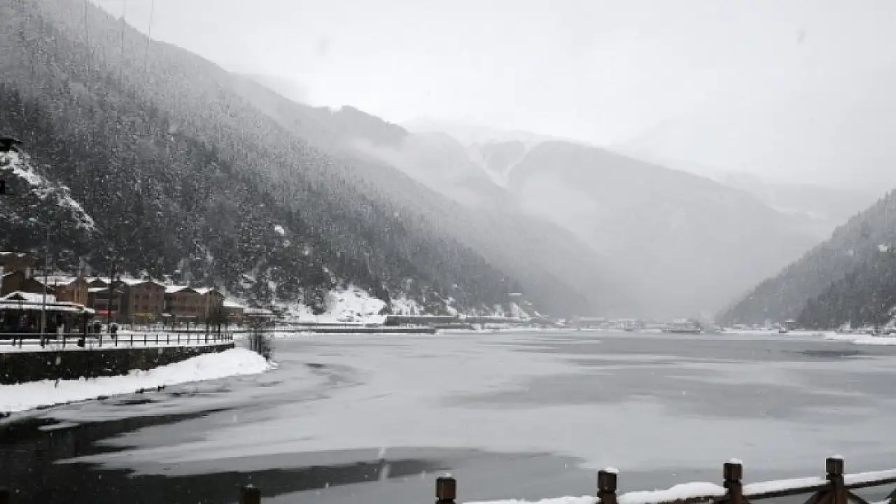Türkiye'nin ve Doğu Karadeniz Bölgesi'nin en önemli turizm merkezlerinden biri olan Uzungöl şiddetli soğuklar ve kar yağışı sonrasında dondu.