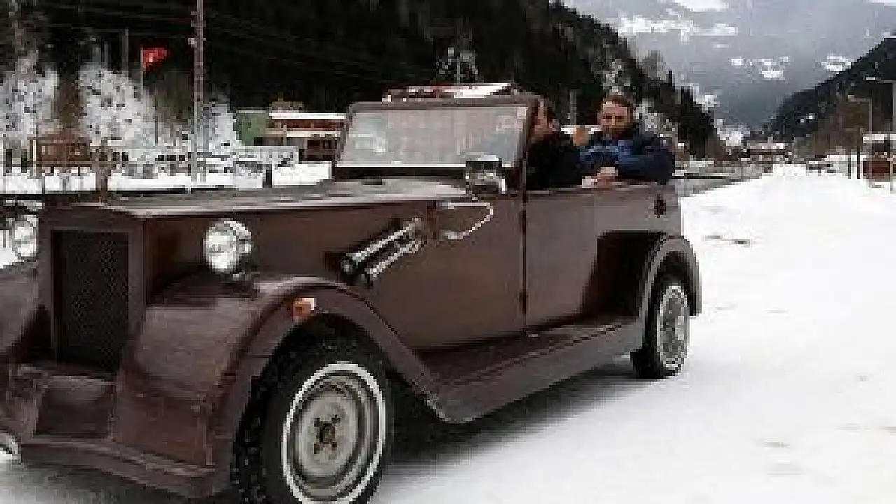 Trabzon'un Çaykara ilçesine bağlı turizm merkezi Uzungöl'de otel işletmeciliği yapan Mehmet İnan, bir süre önce kentin Köprübaşı ilçesinde oturan marangoz arkadaşı Mustafa Kaya'dan Karadeniz'in kıvrak zekasını yansıtan bir araç yapmasını istedi.