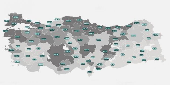 En yüksek riskli iller listesinde birinci sırada yer alan Samsun'da ise sayı 508,97'ydi.