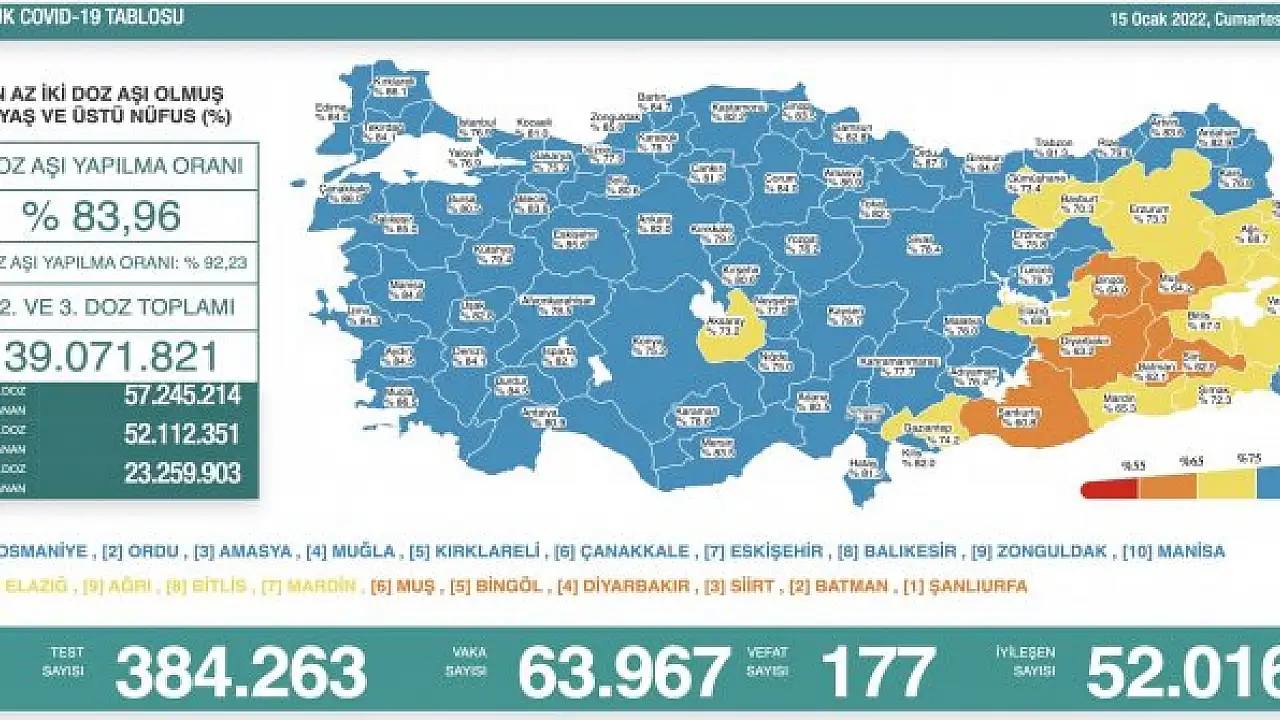 Günlük Koronavirüs Tablosu 'covid19.saglik.gov.tr' adresinden paylaşıldı.