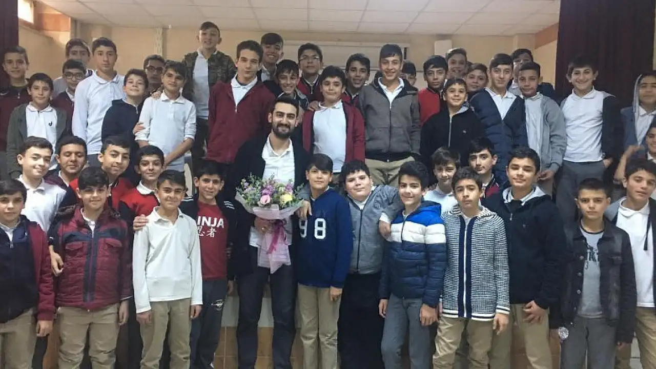 Vakıf Bank İmam Hatip Ortaokulu’nun ‘Mezunlarla Söyleşi’ programında Matematik öğretmeni Ayşegül Akın bu ay okulda 2007 yılında mezun olmuş Fizyoterapist Muhammed Bayrakçı ile 8/B ve 8/F sınıflarını buluşturdu. Dünden bugüne anlatımlarıyla etkili bir sunumda bulunan Muhammed Bayrakçı öğrencilerin ilgiyle izlediği bir söyleşiye imza attı.