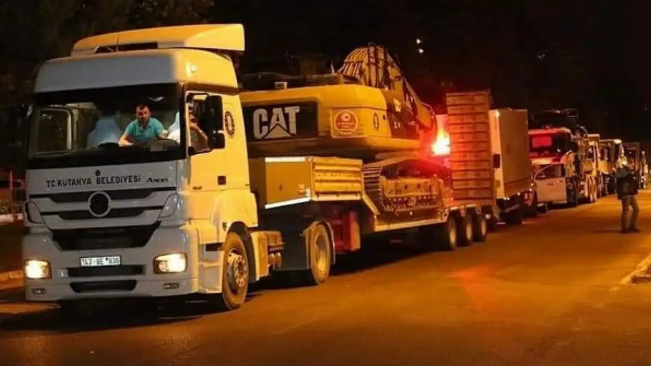 Vali Ali Çelik, İl Özel İdaresi, Kütahya Belediyesi, ETİ Bor, TKİ ve Kızılay desteğiyle oluşturulan 33 araçlık iş makinesi konvoyuyla saat 01.00’de Kütahya’dan Kastamonu’nun Küre ilçesine hareket etti.
