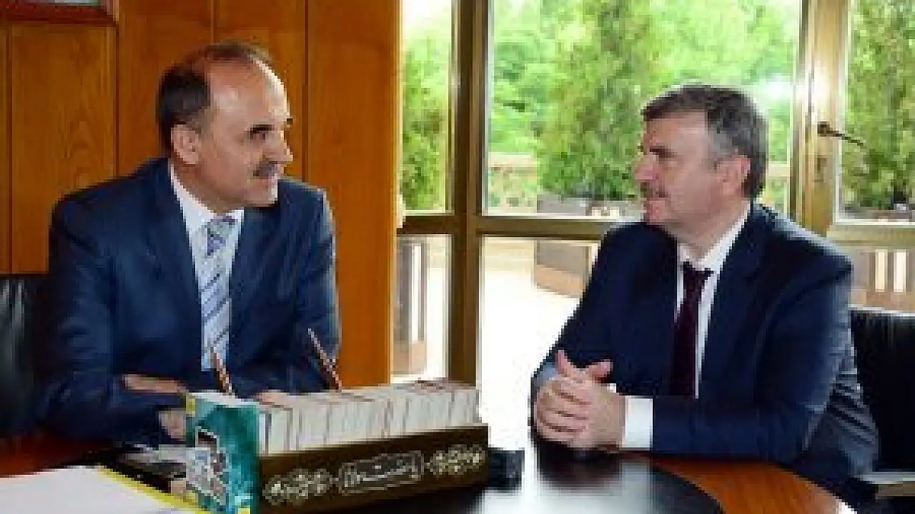 Valiler Kararnamesi ile Merkez Valiliğine atanan Konya Valisi Muammer Erol, Büyükşehir Belediye Başkanı Tahir Akyürek’i makamında ziyaret ederek vedalaştı.