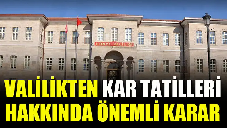 Konya Valiliği İl Hıfzıssıhha Kurulu, Konya’da uygulanacak kar tatilleri hakkında yeni bir karar aldı. Edindiğimiz bilgiye göre; Konya’nın merkez ilçeleri Selçuklu, Meram ve Karatay’da kar tatilleri hakkındaki tasarruf bundan sonra Valilik uhdesinde olacak. Vali Yardımcısı Hacı İbrahim Türkoğlu’nun konuyla ilgili sorumlu vali yardımcısı olarak tayin edildiği bilgisine ulaşıldı. Kırsal ilçelerde ise tatil kararı kaymakamlıklar tarafından verilmeye devam edecek.