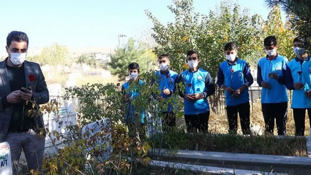 Mehmet Murat İşler Mesleki ve Teknik Anadolu Lisesi Müdürü Veysel Sağlam, öğretmen, öğrenciler ve aileleri, Seyyit Muhammed Mezarlığı'na geldi.