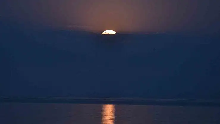 İlk çıkış anında kızıl renklere bürünen dolunay, Van Gölü üzerinde yükseldikçe oluşturduğu yansımayla oluşan yakamoz hayran bıraktı. İlçenin öğretmen evi sahilinde bulunan iskeleye inen vatandaşlar da göl üzerinde yükselen dolunayın oluşturduğu görsel şöleni hem izledi hem de cep telefonları ile kayıt altına alındı.