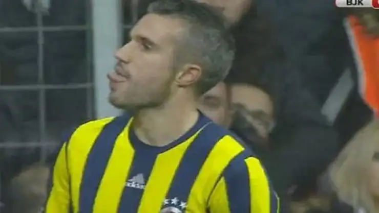 Beşiktaş-Fenerbahçe 28.dakikasında Fenerbahçe savunmasının attığı uzun topa yetişemeyen van Persie pozisyonun dönüşünde Beşiktaş tribünlerine dönerek dil çıkardı.
