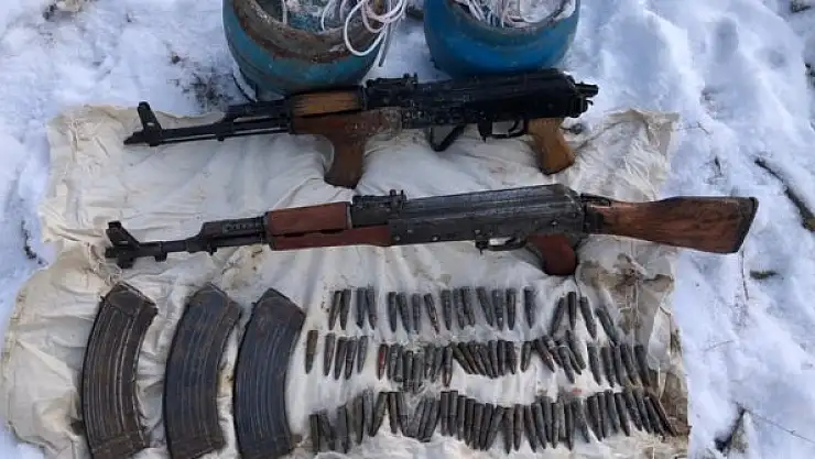 Aramada, AK-47 kalaşnikof piyade tüfeği, buna ait 7 şarjör, 257 fişek ve 16 av tüfeği fişeği ile hücum yeleği bulundu.