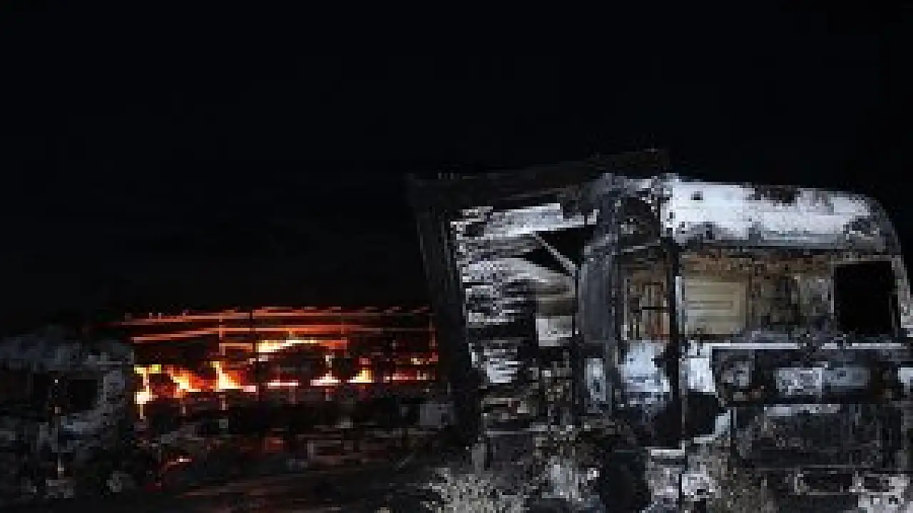 Van'da teröristler iki tır ve bir kamyonu ateşe verdi