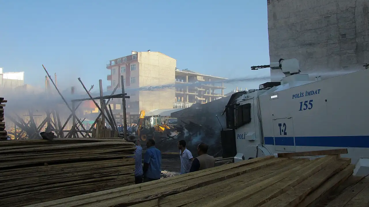 Van'ın Erciş ilçesinde kavak ağacı satışı yapılan meydanda başlayan ve kısa sürede ev ve iş yerlerine de sıçrayan yangın, il ve ilçe itfaiye ekiplerinin yanı sıra emniyetin TOMA araçlarının müdahalesiyle söndürülebildi.