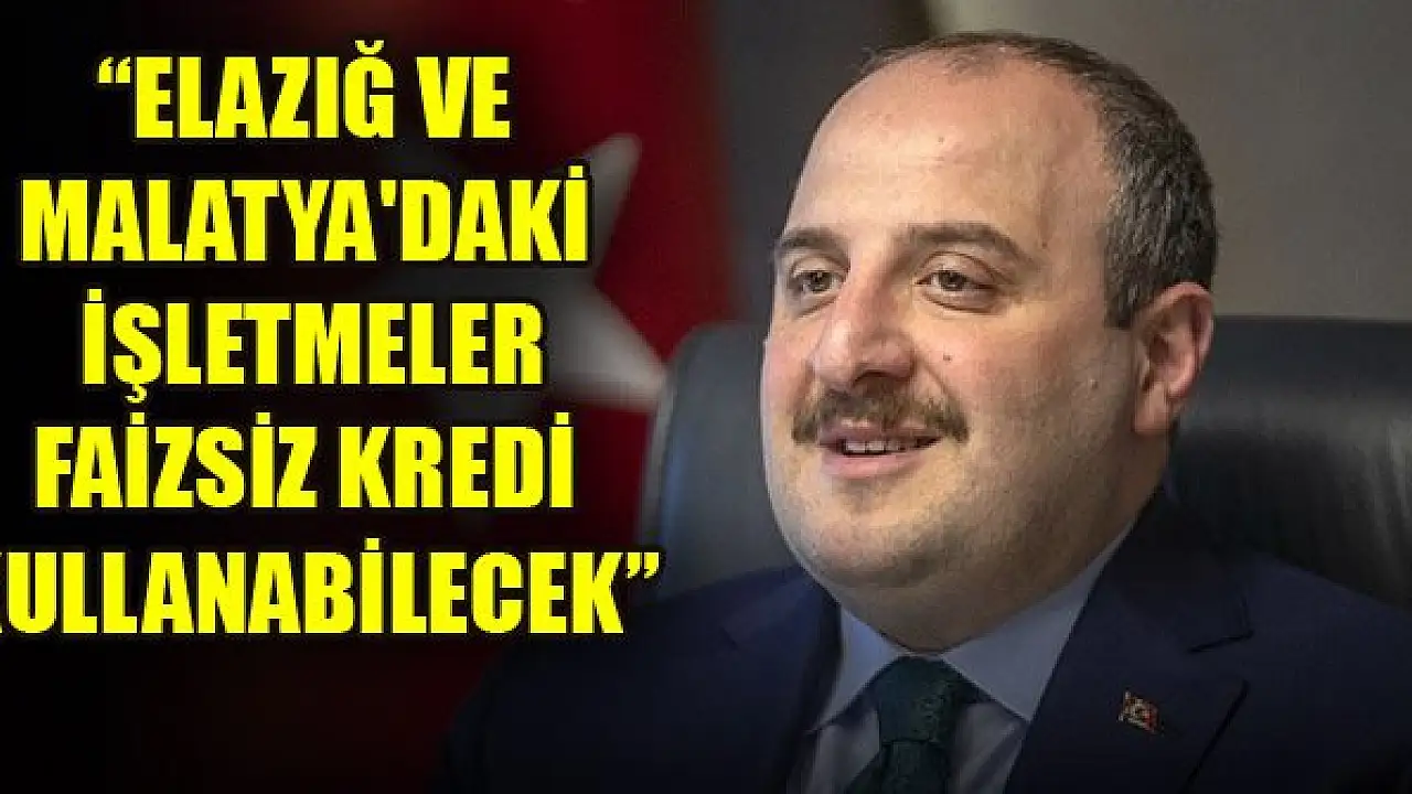 Sanayi ve Teknoloji Bakanı Varank, Elazığ ve Malatya'daki işletmelerin, istihdam durumuna göre 100 bin ile 150 bin lira arasında faizsiz kredi kullanabileceğini belirtti.