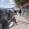 Muş'un Varto ilçesine çevre il ve ilçelerden gelerek dilenen ve çoğunluğunu kadın ve çocukların oluşturduğu dilenciler 1 mayısta da boş durmadılar.