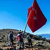 Hatay'ın Hassa ilçesinde, Suriye sınırına yakın Sugediği Mahallesi'ndeki tepeye vatandaşlar tarafından bayrak direği dikildi.