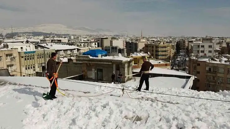 Adıyaman'da vatandaşlar son bir haftadır etkili olan ve kalınlığı yarım metreyi geçen karı temizlemek için çatılara çıktı.