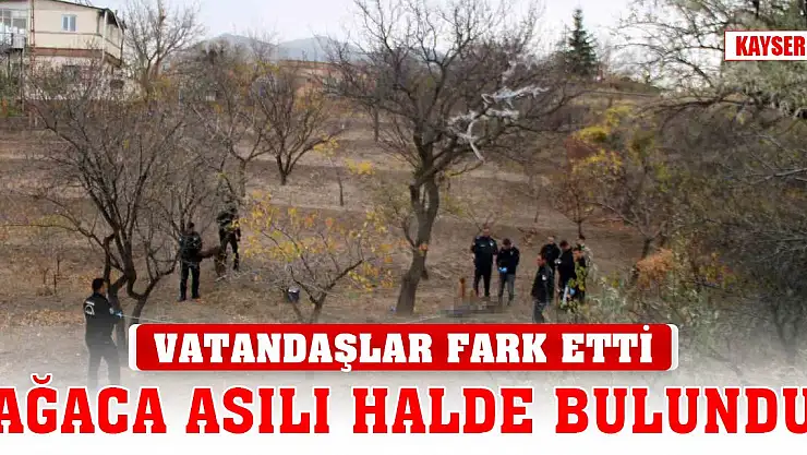 Kayseri'nin Melikgazi ilçesinde köpek gezdiren vatandaşlar, boş arazide ağaca asılı halde bir erkek cesedi buldu.