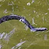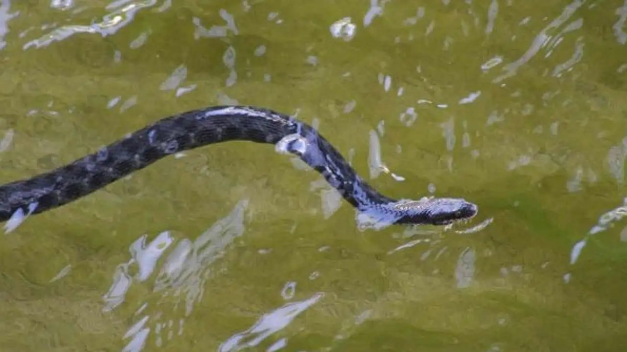Vatandaşlar kanal kenarında film izler gibi tatlı su yılanı izliyor