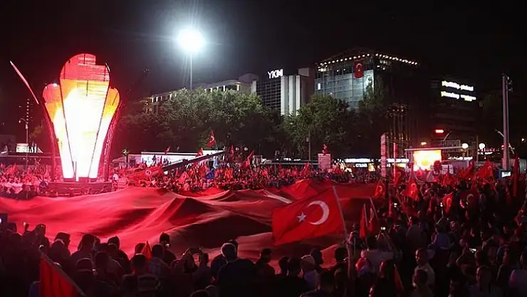 Darbe girişimi sonrasında Cumhurbaşkanı Recep Tayyip Erdoğan ve BaşbakanBinali Yıldırım'ın çağrısı üzerine meydanlara koşan her yaştan çok sayıda vatandaş, ellerinde Türk bayraklarıyla Kızılay Meydanı'nda bu akşam da yerini aldı.