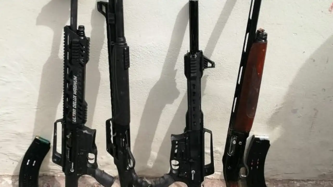 İZMİR'in Konak ilçesinde, vatandaşların ihbarı üzerine harekete geçen polis ekipleri, bir evin bahçesinde 4 pompalı tüfek ve çok sayıda kartuş buldu.