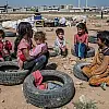 Sınıra yakın Turgut Özal Mahallesi'ndeki boş alanda kurdukları çadırlarda çoğunluğunu kadın ve çocukların oluşturduğu ve hayırseverlerin desteğiyle yaşamlarını sürdüren sığınmacılar, bir an önce ülkelerine dönmenin hayalini kuruyor. Çadırlarda kadınlar kovalarla taşıdıkları suyla temizlik yapmaya çalışırken, çocuklar ise çevreden buldukları otomobil lastikleriyle oynuyor.