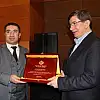 Van Ticaret Borsası (VATBO) Başkanı Selman Toprak, Konya Ticaret Borsası ile imzalanan 'kardeş borsa' protokolüne destek ve ilgisinden dolayı Dışişleri Bakanı Ahmet Davutoğlu'na teşekkür plaketi verdi.