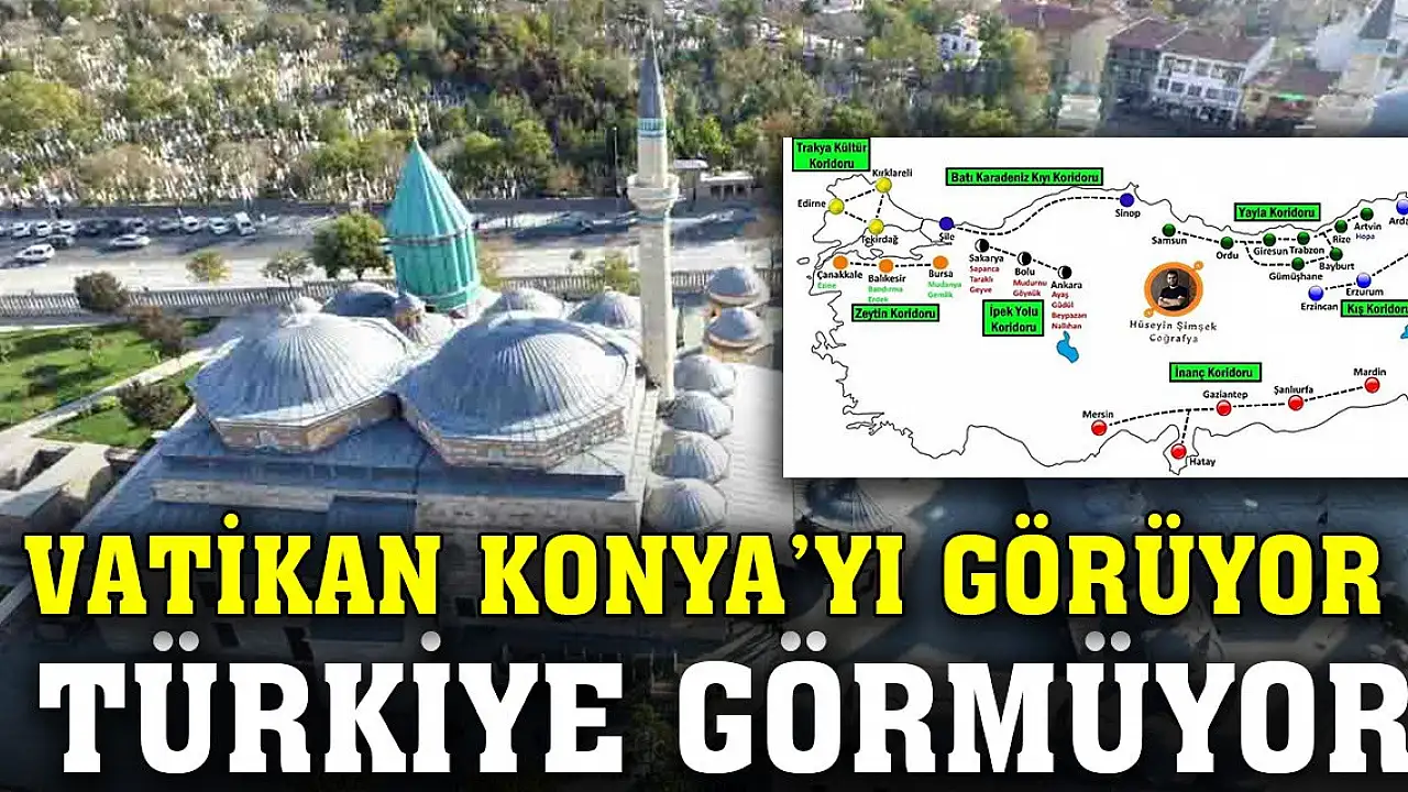 Kültür ve Turizm Bakanlığı'nın hazırladığı Türkiye'nin 5 kentinin içinde yer aldığı 'İnanç Turizm Koridoru'nda Konya yer almazken, Papalık talimatıyla Vatikan'da başlatılacak yeni bir inanç turizmi şehirleri listesinde Konya'nın da dahil edileceği öğrenildi.