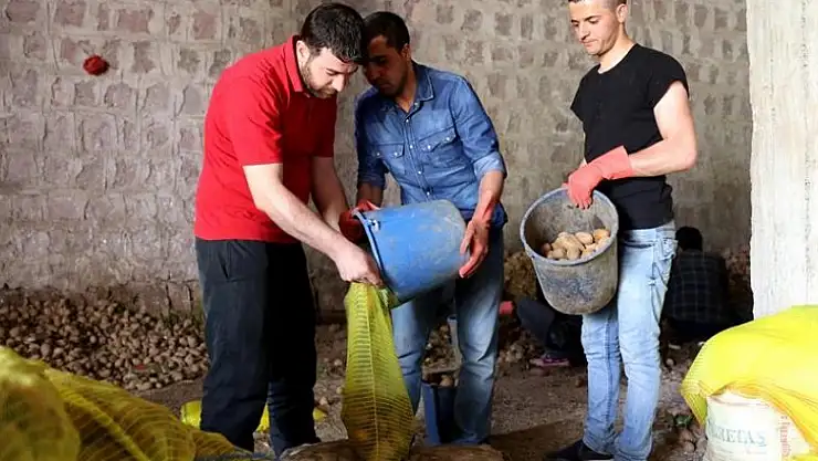 Nevşehir'deki depolardan teşkilat yönetimince temin edilen patatesleri çürüklerinden ayırıp, torbalara koyan Afgan öğrenciler, daha sonra bunları kendilerine tahsis edilen araçlarla ihtiyaç sahiplerine ulaştırıyor.