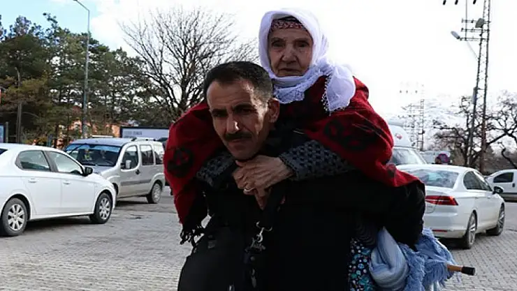 İHA muhabirinin ulaştığı Ömer Faruk Dağkapı, annesinde kalp yetmezliği, kemik erimesi ve gözlerinde de rahatsızlık olduğunu belirterek, 17 yıldır sırtında taşıyarak hastanelere götürdüğünü söyledi. 8 çocuk babası olan Dağkapı, "Biz ikisi kız 5 kardeşiz. Ama içlerinde durumu en müsait olan benim. Bu nedenle anneme ben bakıyorum, onu hastanelere ben götürüyorum. Maddi durumum elvermediği için onu sırtımda taşıyarak götürebiliyorum" dedi.