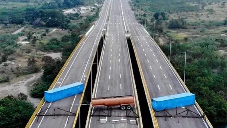 Venezuela ile Kolombiya arasında sınır geçişlerinden biri olan Las Tienditas Köprüsü konteynır ve tankerlerle trafiğe kapatıldı. Venezuela'da yaşanan gıda ve sağlık malzemesi sıkıntısının giderilmesi için bu köprüden insani yardım gönderilmesi planlanıyor