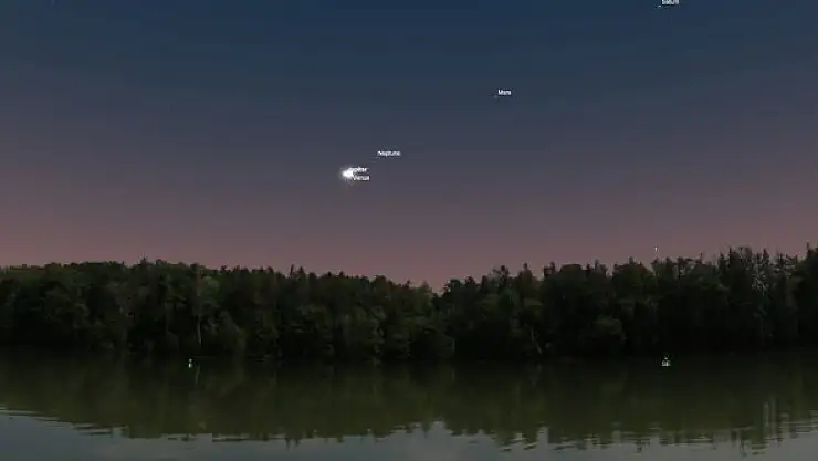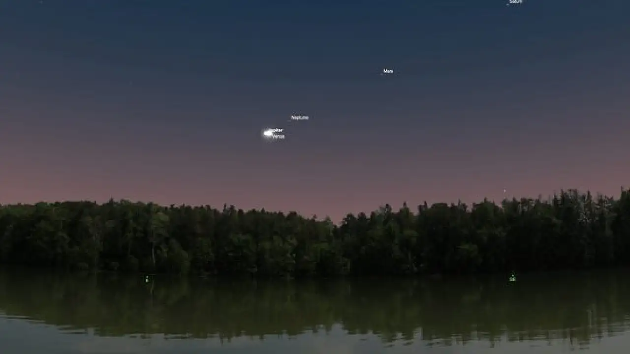 Jüpiter ve Venüs gezegenleri, bugün ve yarın sabah erken saatlere kadar birbirine çok yakın "hatta neredeyse çarpışıyormuş" gibi çıplak gözlerle gözlemlenebilecek. İki gezegenin bir sonraki benzer yakınlaşması 2039 yılında olacak.
