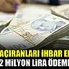 İhbarı doğru çıkan kişilere kesinleşen verginin yüzde 10'u oranında ödeme yapılırken, 2019'da ihbarda bulunanlara yapılan ikramiye ödemesi 12 milyon 300 bin 472 lira olarak hesaplandı.