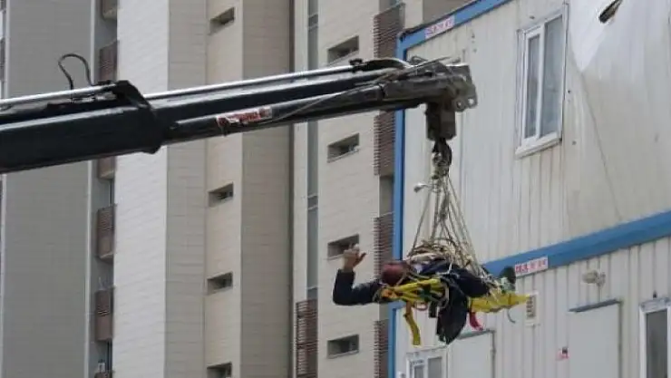 İstanbul'da Sancaktepe'de cami inşaatında vincin direği işçinin üstüne düştü. Çarpmanın etkisiyle konteynerin içine düşen yaralı işçi sedyeyle aşağıya indirilip hastaneye kaldırıldı.