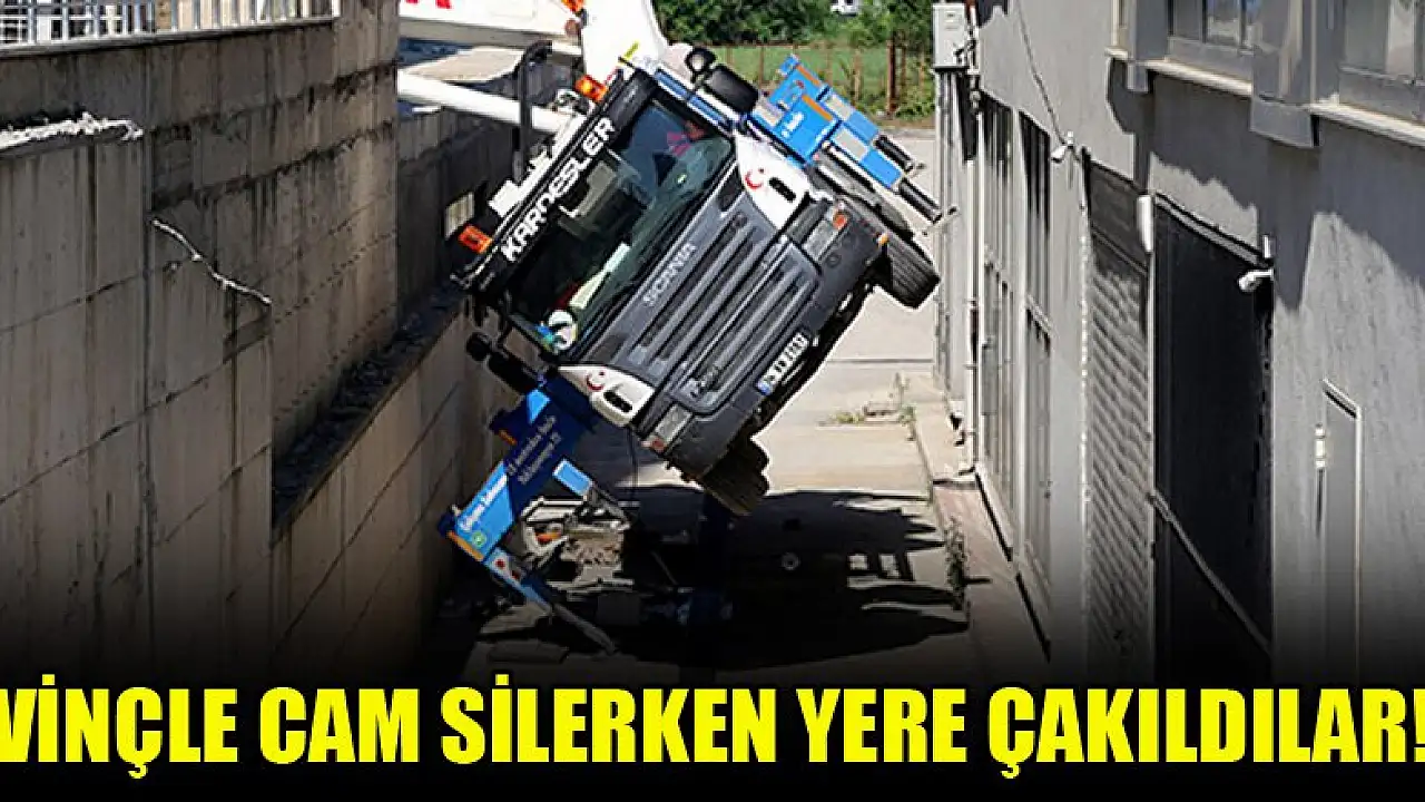 Vinçle cam silerken yere çakıldılar!