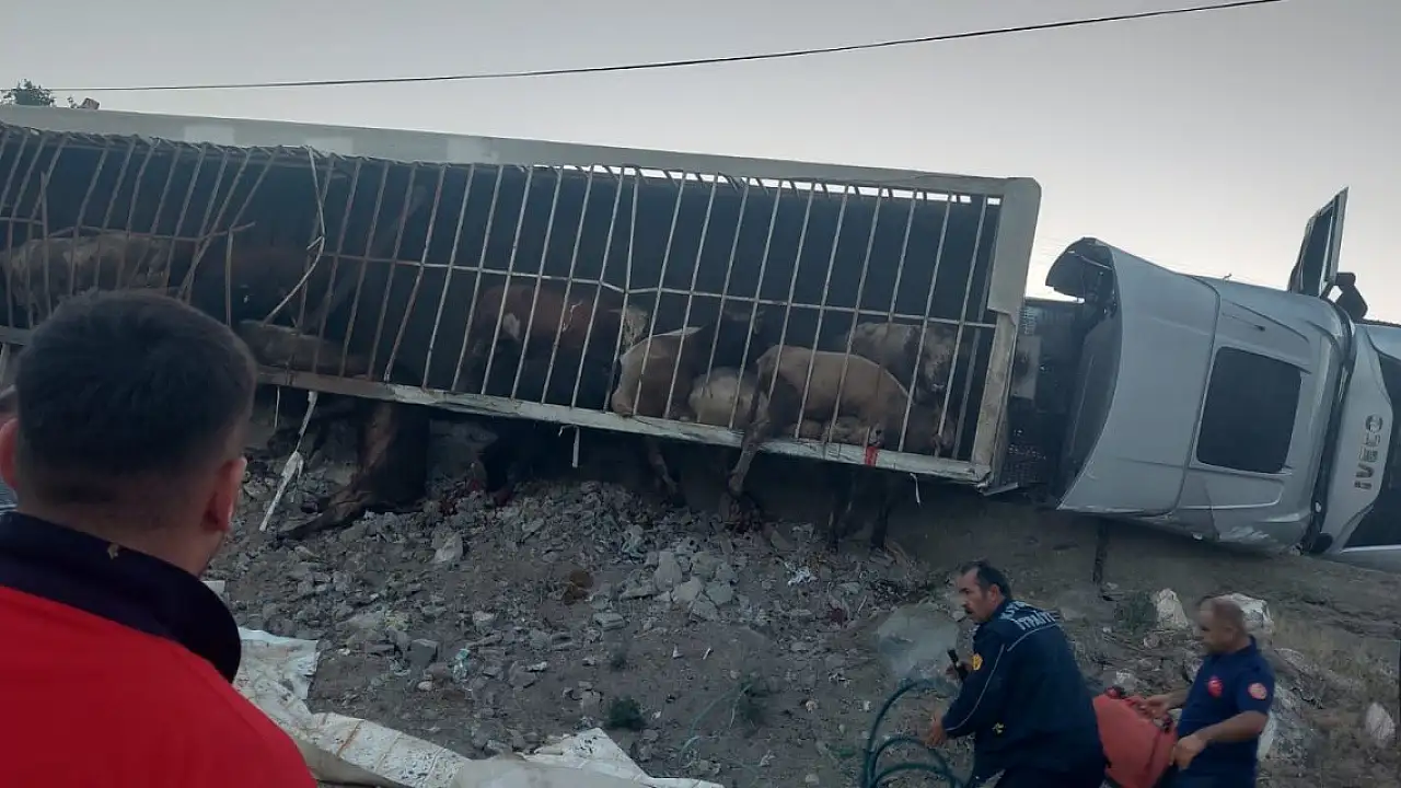 Meydana gelen kazada sürücü yaralanmazken, tırda bulunan çok sayıda hayvan da telef oldu.
