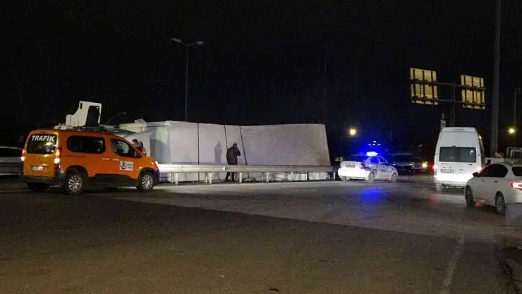 Kocaeli'de Körfez gişelerden TEM Otoyolu'na girmek isteyen kağıt yüklü tır, sürücünün virajı alamaması üzerine bağlantı yolunda devrilerek yan yattı. Sürücünün sağlık durumunun iyi olduğu öğrenilirken kazadan dolayı bağlantı yolunun tek şeridi trafiğe kapandı.