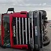 Virajı alamayan tır devrildi
