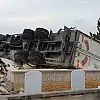 Virajı alamayan tır mezarlığa devrildi