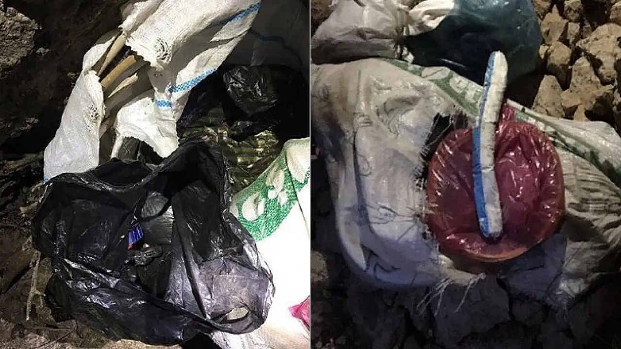 Yapılan aramada bir viyadüğün altına gizlenmiş 4 dinamit lokumu, 3 dolu piknik tüpü, yarım kilogram barut, 250 metre kablo, 50 pense ve poşet içinde sarılı bir kilogram esrar ele geçirildi.
