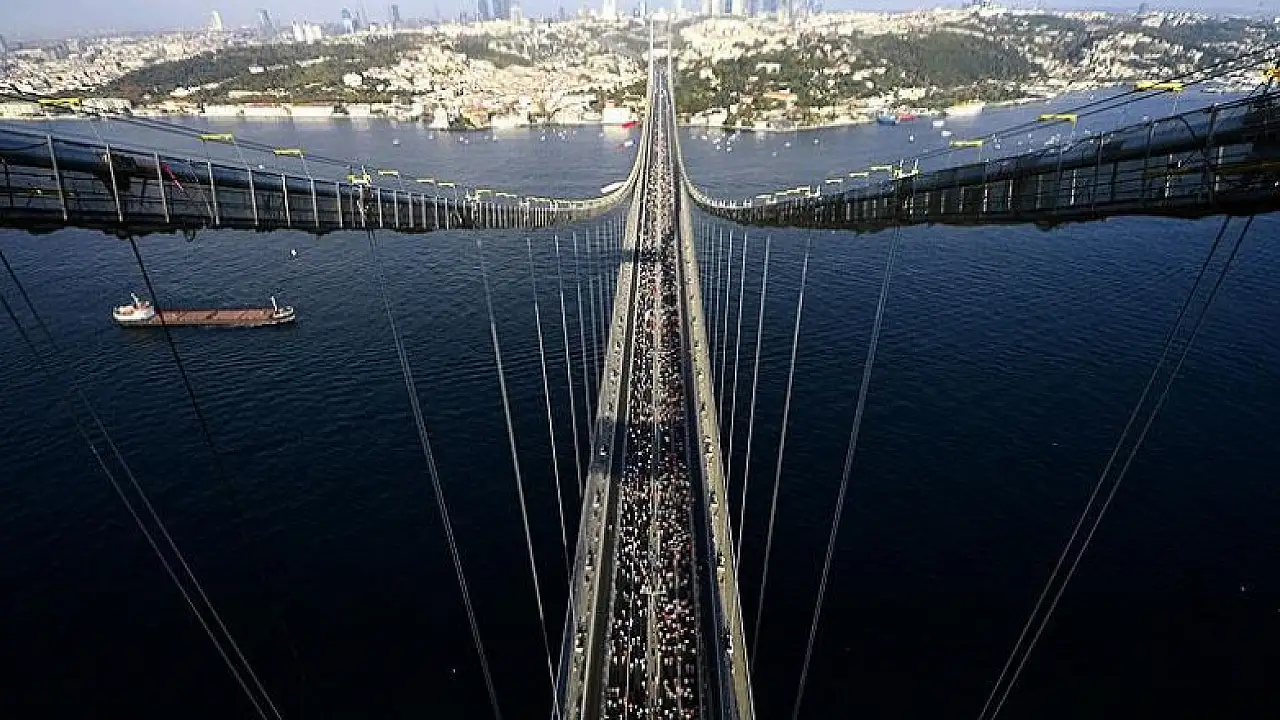 Vatandaşların büyük ilgi gösterdiği 8 kilometrelik koşuda katılımcılar, 15 Temmuz Şehitler Köprüsü'nü geçip, Dolmabahçe'de parkuru tamamlayacak.