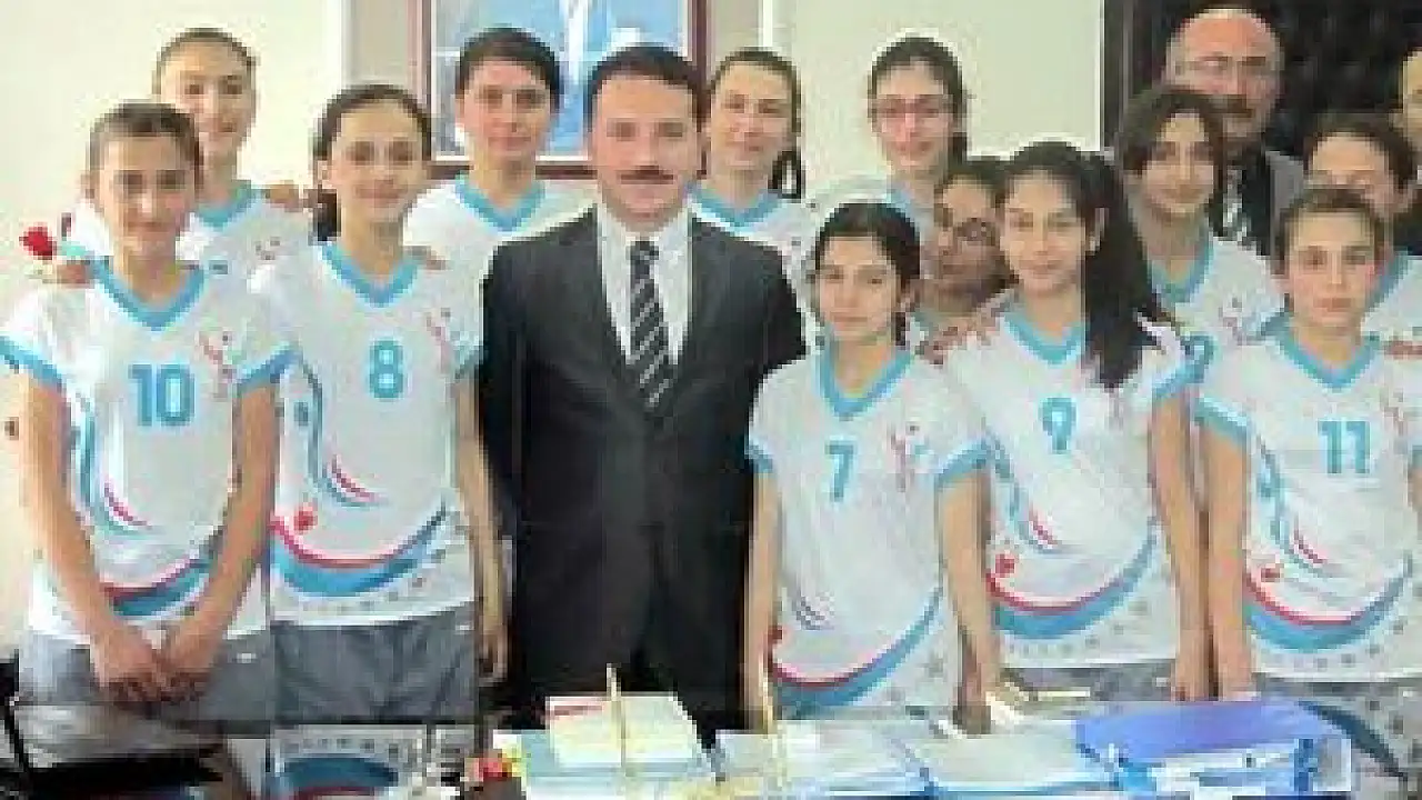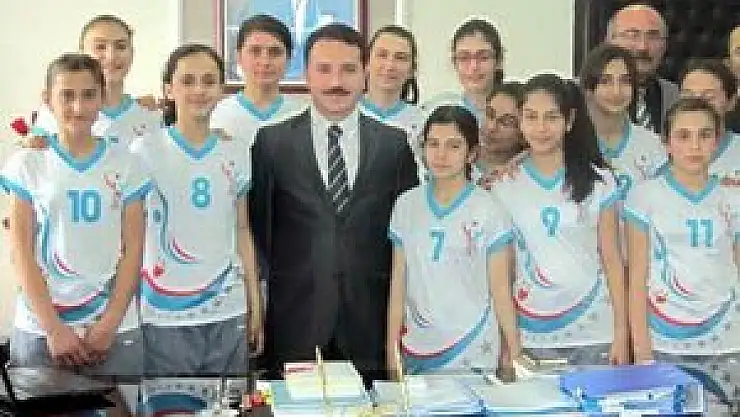Konya birincisi olarak katıldığı Türkiye Şampiyonası grup müsabakalarında birinci gelerek yarı finale yükselme başarısını gösteren Hüyük İlçesi Yunus Emre Ortaokulu Yıldız Kız Voleybol Takımı, Hüyük Kaymakamı Bayram Türker'i makamında ziyaret etti.