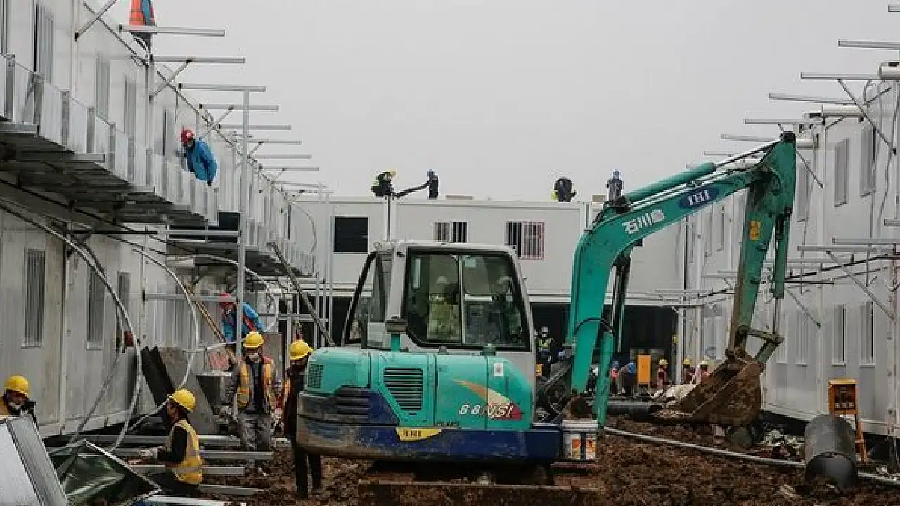 Çin'in Vuhan kentinde yapımına başlanan ve günler içinde tamamlanması planlanan bin yataklı prefabrik Huoshenshan Hastanesi'nde çalışmalar tüm hızıyla devam ediyor.