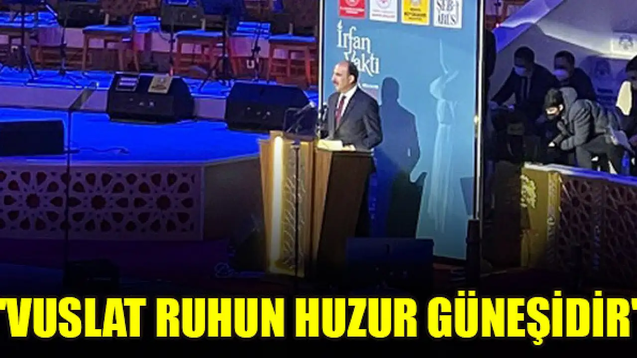 İrfan Vakti kavramının anlamının çok geniş olduğuna dikkat çeken Başkan Altay; “Vuslata giden yollar, çoğu zaman dikenlerle kaplıdır. Fakat sabır, vuslatı güzelleştirir. Bu yüzdendir ki Mevlânâ Hazretleri bâki âleme göç edişinin, “Düğün Gecesi” olarak gönüllere yerleşmesini ister. Onun için ölüm, cennet mekânına açılan bir perdedir, tohumun toprağa düşüp bir başka âlemde yeniden yeşermesidir. Vuslat yıl dönümü anma törenlerinin bu yılki teması olan "İrfan Vakti", oldukça anlamlı bir kavrama atfedilerek belirlendi. Çünkü bilmek ayrı; tanımak, hissetmek, idrak etmek ve o idrakle tefekkür etmek ayrı şeylerdir. Her âlim, irfan yolculuğuna çıkamaz. Bunu başarabilmek, çok az insana nasip olan bir nimettir. Dinimiz İslam, ilmin de irfanın da en güzel yaşandığı ve yaşatıldığı manevi bir iklimdir. İslam; kurtuluşun, iyiliğin, güzelliğin ve huzurun yegâne anahtarıdır. Dinimizin tüm güzelliklerini; barışla ve hoşgörüyle anlatmak, bütün Müslümanların üzerine düşen bir vazifedir. Özellikle İslamofobi hastalığının giderek yayıldığı çağımızda, dinimizi en doğru şekilde insanların kalplerine yerleştirebilmek büyük bir meziyettir ”diye konuştu.