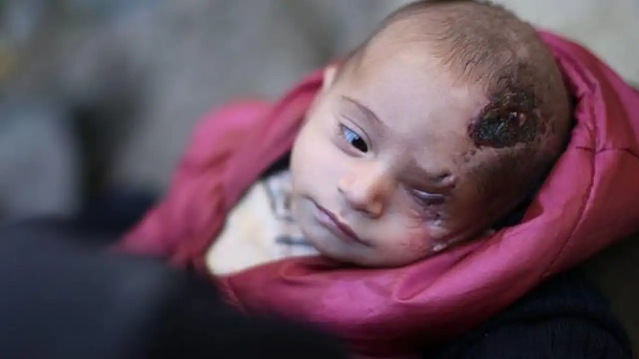 L'enfant syrien "Karim" a perdu sa mère, il a souffert de la perte d'un œil et d'une fracture du crâne, lors de bombardements du régime syrien sur la Ghouta orientale en novembre dernier.