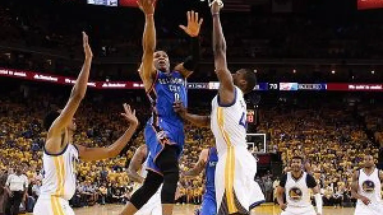 Amerikan Basketbol Ligi (NBA) play-off'larında Oklahoma City Thunder'ı 120-111 yenerek rakibinin tur atlamasına izin vermeyen Golden State Warriors, Batı Konferansı final serisinde durumu 3-2'ye taşıdı.