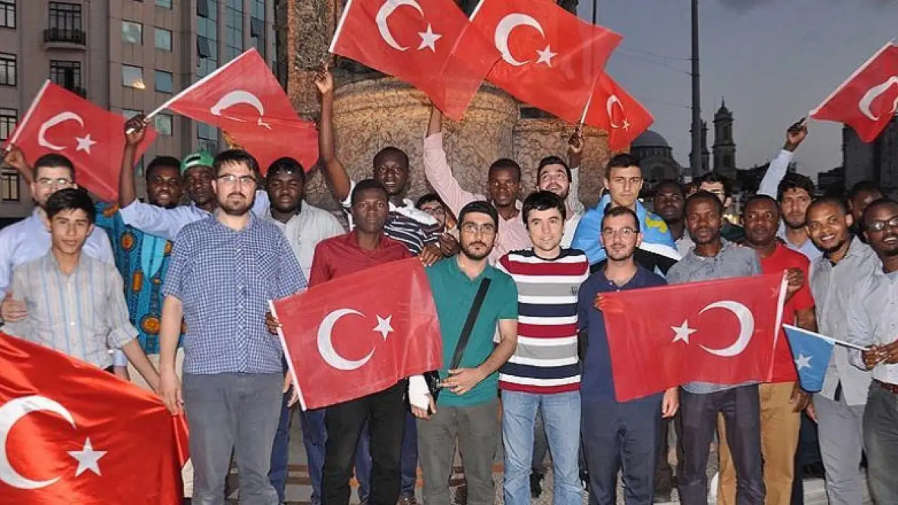 İstanbul'da eğitim gören 20 ülkeden öğrenciler, FETÖ'nün darbe girişimini protesto etti.