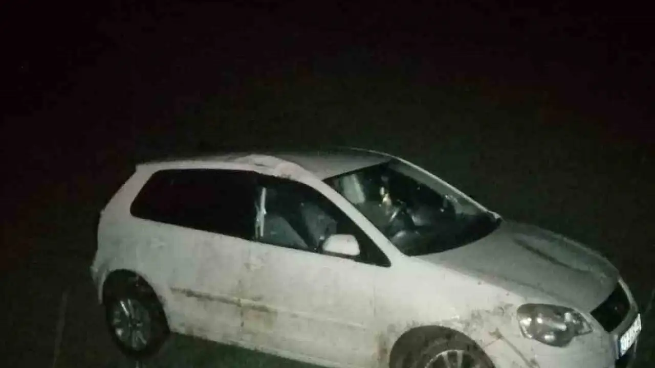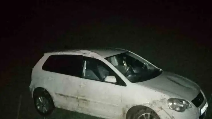 Yağış etkili oldu, otomobil tarlaya uçtu