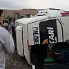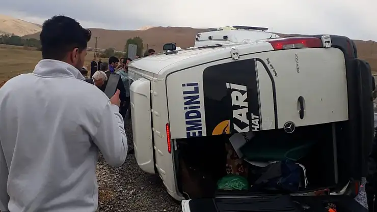 Van'da yağış nedeniyle kayganlaşan yolda sürücüsünün kontrolünden çıkarak takla atan minibüsteki 10 yolcu yaralandı.
