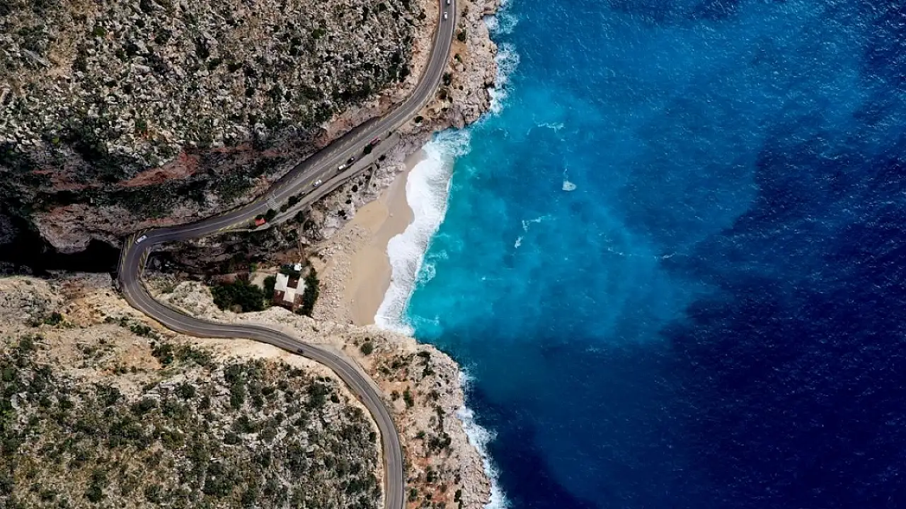Kaputaş'taki bu manzara, dron ile havadan görüntülendi.