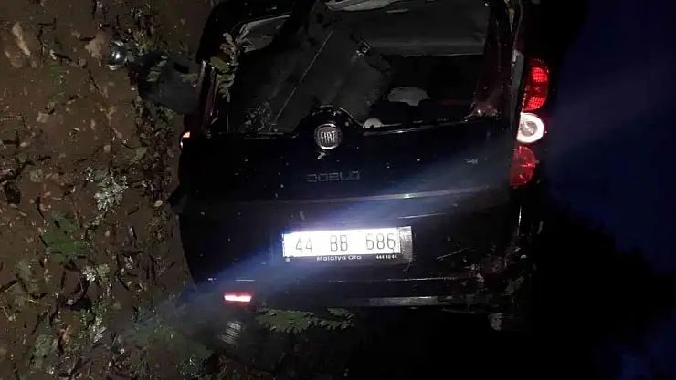 Malatya'nın Akçadağ ilçesinde yağışlı havanın etkisiyle kayganlaşan yolda kontrolden çıkan hafif ticari araç takla atarak yan yattı.