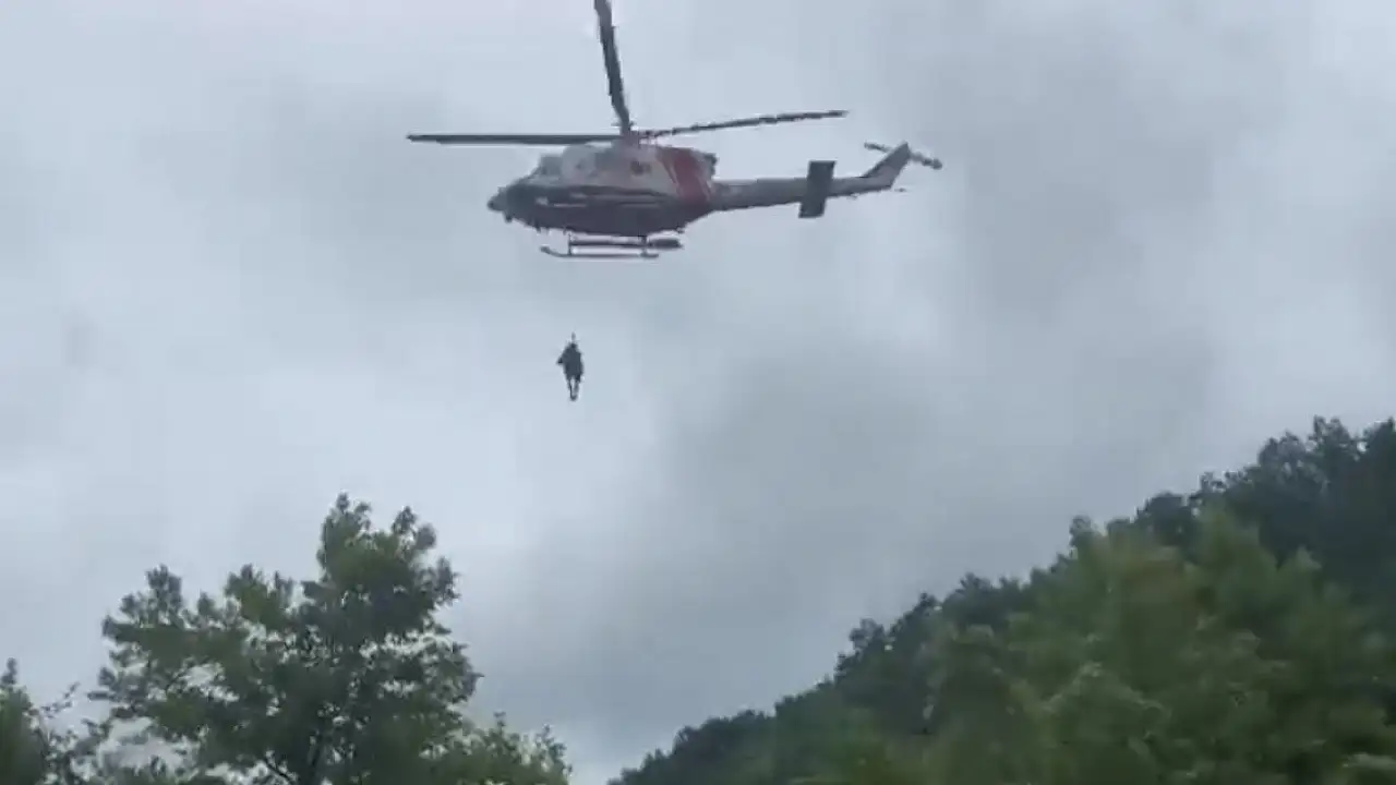 ŞİLE'de yağmur sonrası selde mahsur kalan iki kişi helikopter ile kurtarıldı.